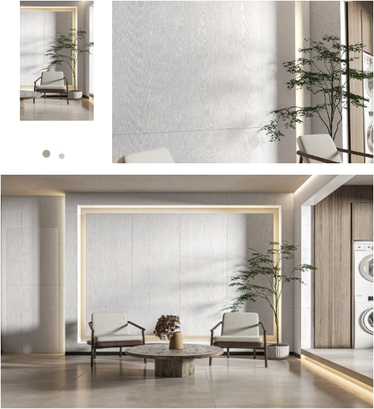 當陽光傾瀉而下,750x1500mm規格沁園春打造的簡約背景墻,與整個空間色系完美融合,延伸中不僅拓寬視覺界限,質樸沉靜的底蘊,仿佛讓空間散發出一種歲月沉淀的味道。