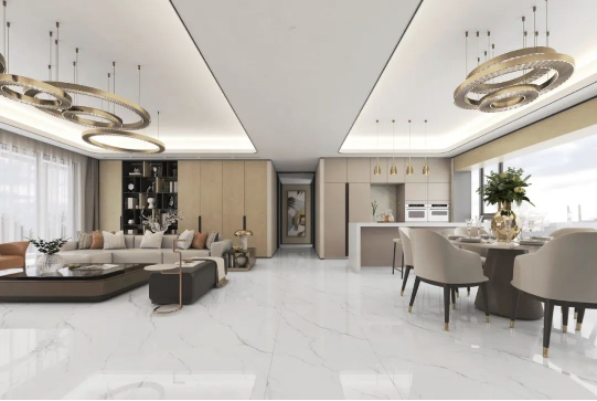 弱化家居框架的拘束,無限連紋設(shè)計突破瓷磚的尺寸界限。銀沙灰紋理自然銜接,使整體空間更具視覺張力,大大地提升家居美感與藝術(shù)氣質(zhì)。