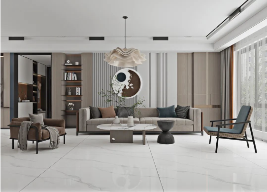 地面以充滿飄逸美感的達拉斯白進行通鋪,如玉的潤澤,高雅的氣息,仿佛置身于靜謐的時空里,靜享歲月安然,盡顯空間之美。